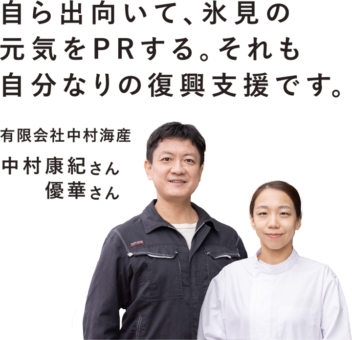 氷見への貢献に向け自分が今できることは何かを常に見つめ、氷見の元気を全国に発信し続けていきたいと考えています。