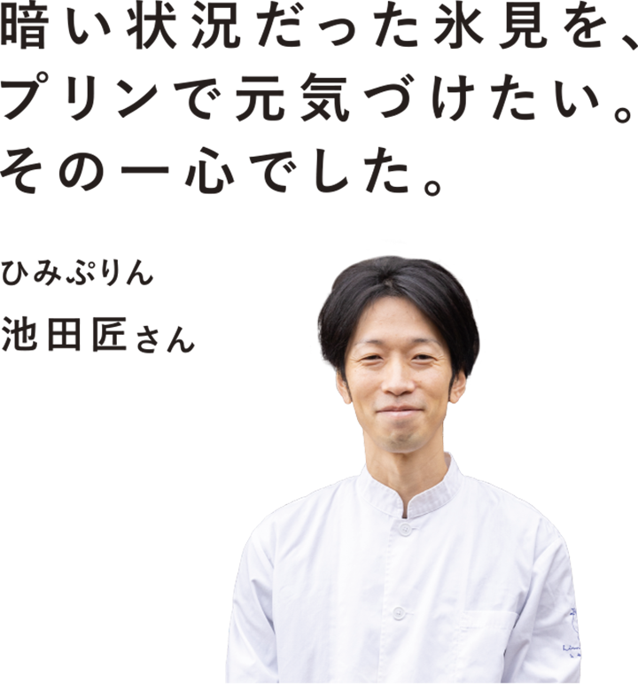 元日の地震もそうでした。被害も受けたしショックでしたが、自分以上に食べるものに困っている人がたくさんいる。そこで、販売に向け用意していた氷見ぷりん1,000個を無料配布することにしたのです。商売を考えている場合じゃない。氷見全体が暗い状況でしたので、氷見ぷりんで元気づけたい。その一心でした。